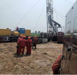 The shallow casing of well GO2-17-67 was blocked. The oxygen activation logging leak test of the well showed that the casing leaked at 575.52-578.42m, the cement return height was 113m, the finished depth of the surface casing was 339.73m, the test extrusion pressure at the leakage point was 0MPa, and there was no water return on the ground.